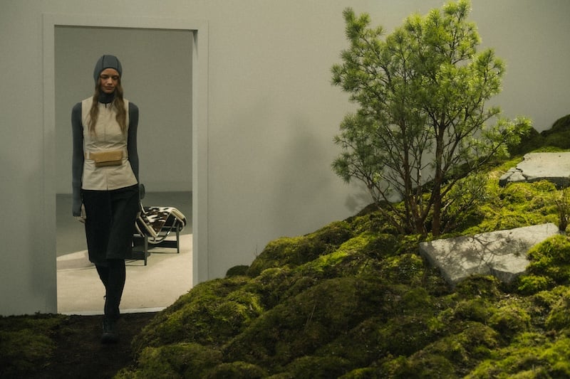 OBS hatte, wie auch bei den bisherigen Shows, das gesamte Event selbst produziert. Jedes letzte Detail stammte aus der kreativen Feder und der Organisation des Hauses. Die Handwerkskraft und das Auge fürs Besondere des Teams zeigt sich jenseits der eigentlichen Kollektion vor allem im Set Design. Die kreisrunde Insel steht repräsentativ für die Arbeitsweise von OBS, den „Schaffensraum“. Inspiration und Handwerk fließen im Arbeitsalltag von der Werkstatt ins Büro, durch den Garten und zurück. Dieses Gefühl der Transition, Struktur und Ruhe erreichte so auch jenseits der Modestücke das Publikum.